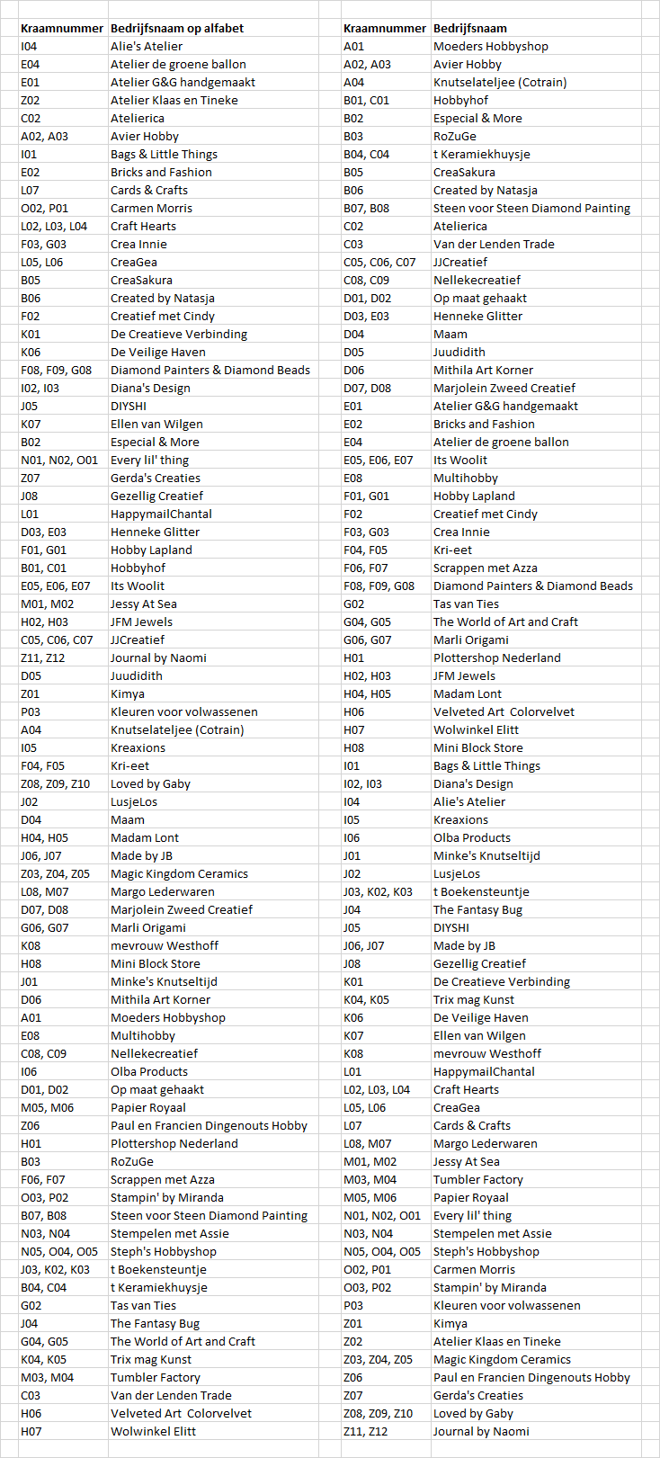 Dit waren de plattegrond en de standhouderslijst voor 10, 11 & 12 april – begin september volgt hier de nieuwe plattegrond!