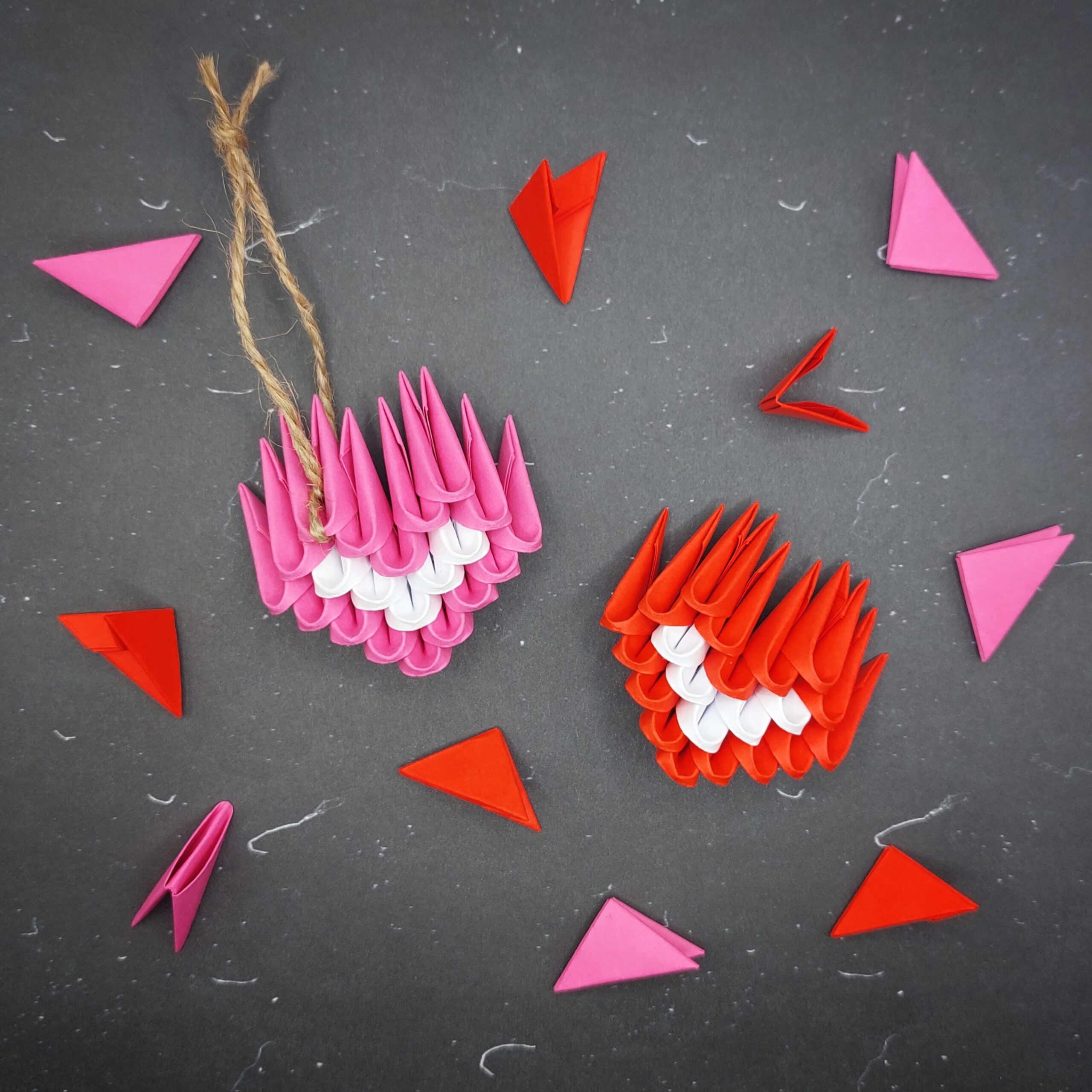 3d origami is een Japanse papiervouwkunst en wordt opgebouwd uit vele dezelfde segmenten. Door deze segmenten op elkaar te schuiven kun je verschillende figuren maken.