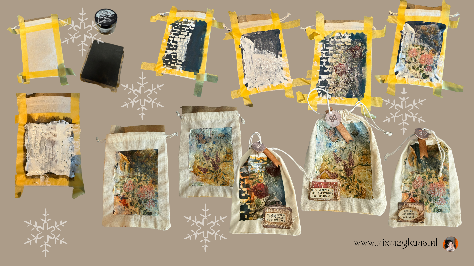 Bij Journalfreak maken we van een simpel zakje een klein kunstwerkje. In één uur tijd tover je een gewoon cadeauzakje om tot een uniek, handgemaakt cadeautje dat bijna te mooi is om weg te geven.