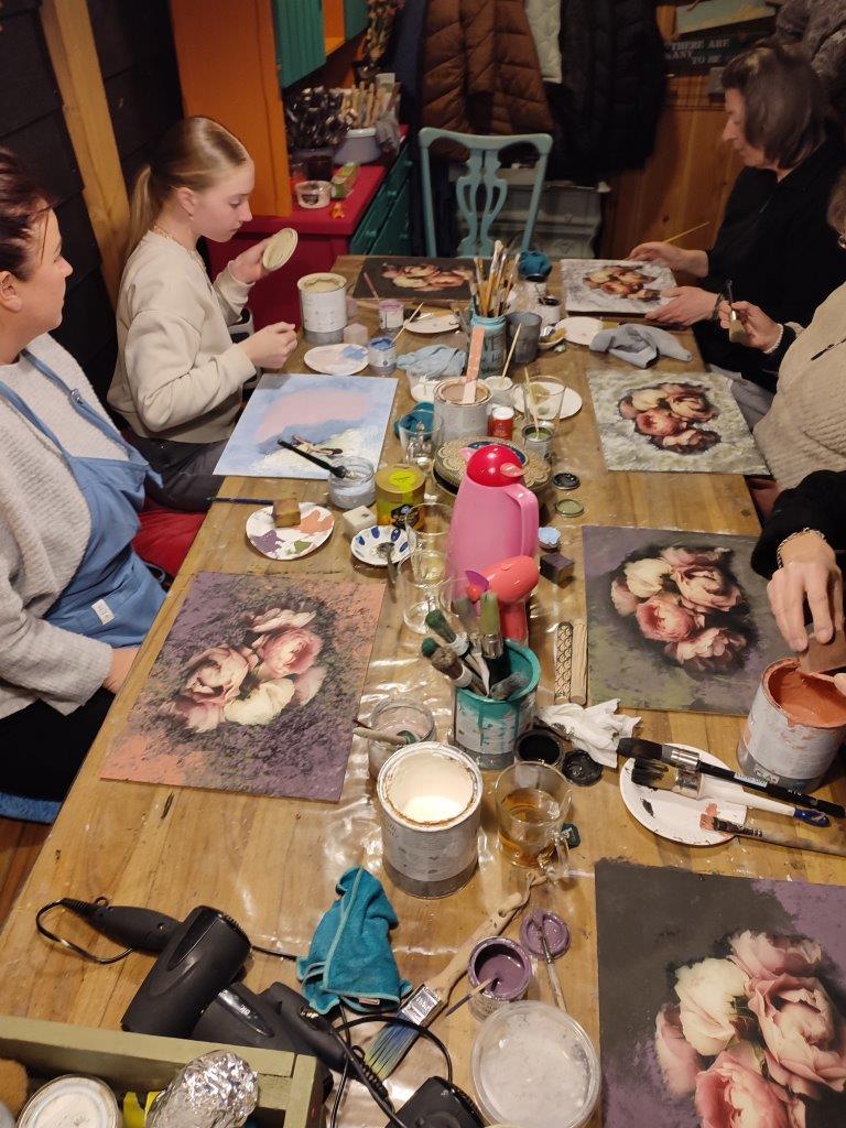 Je kunt kiezen tussen diverse decoratieve (kerst) items om te beschilderen, bijvoorbeeld een theelichtje, sneeuwvlok, kerstballen, houten hangertjes of glaswerk. Er zijn ook sjablonen en decoupages aanwezig om jouw item helemaal naar jouw wens te maken. Na het schilderen werken we het item af met een clear wax ter bescherming en daarna kun je nog spelen met diverse gekleurde wax om je accessoire precies die look te geven die jij mooi vindt en bij je huis past.